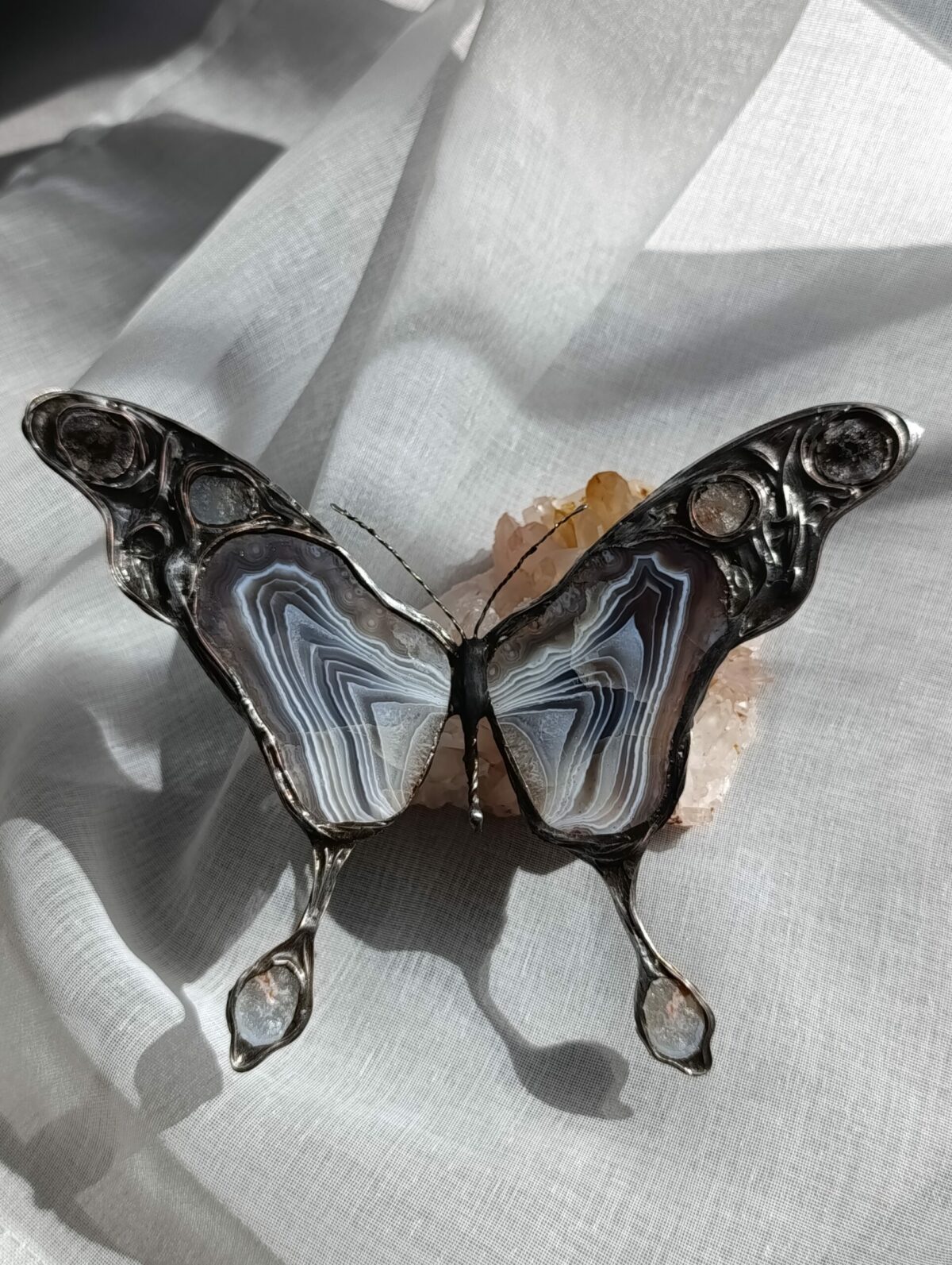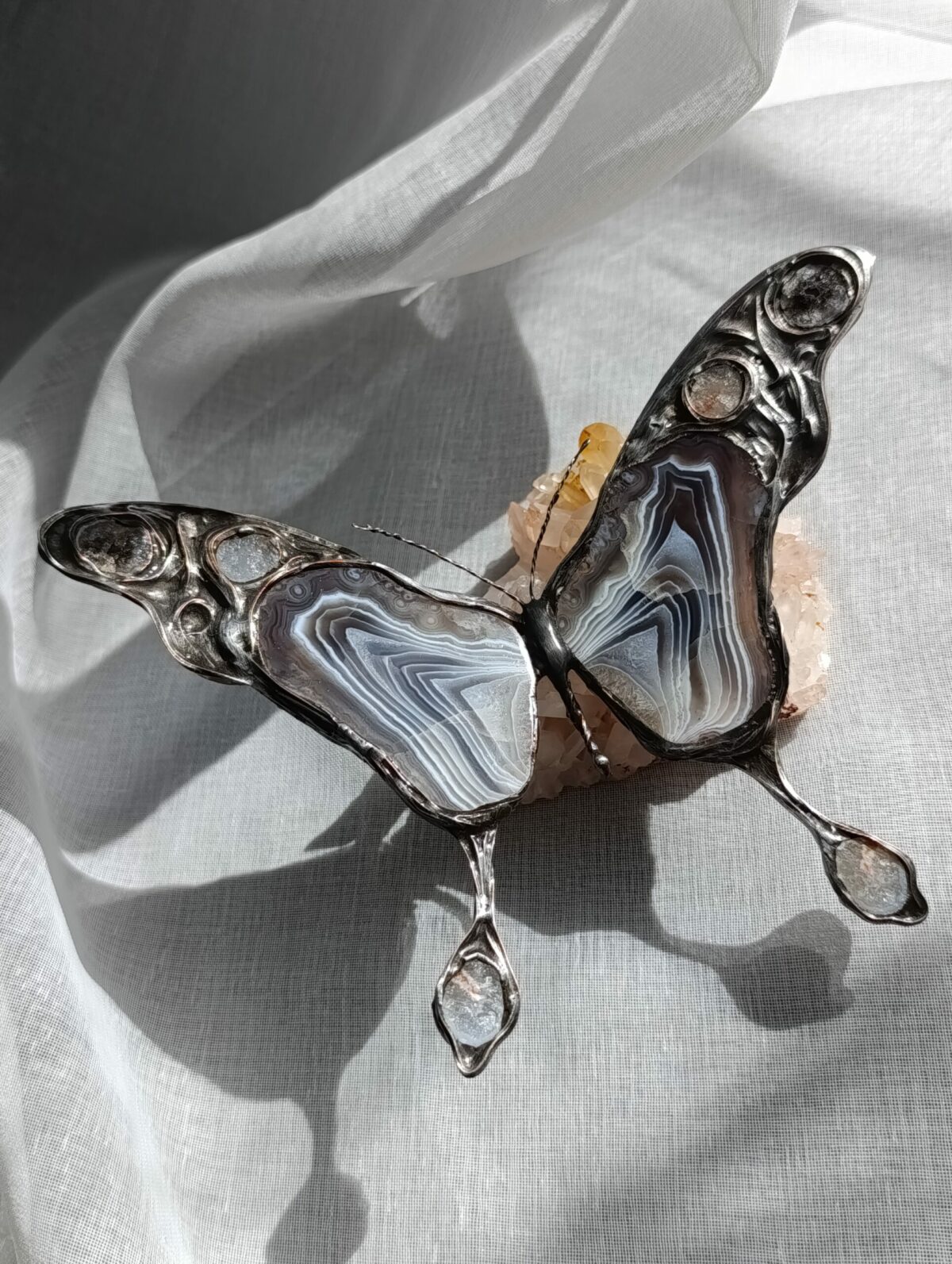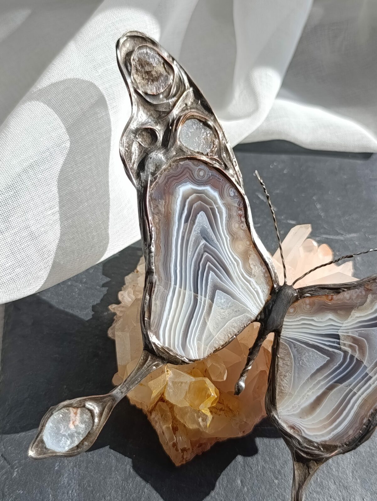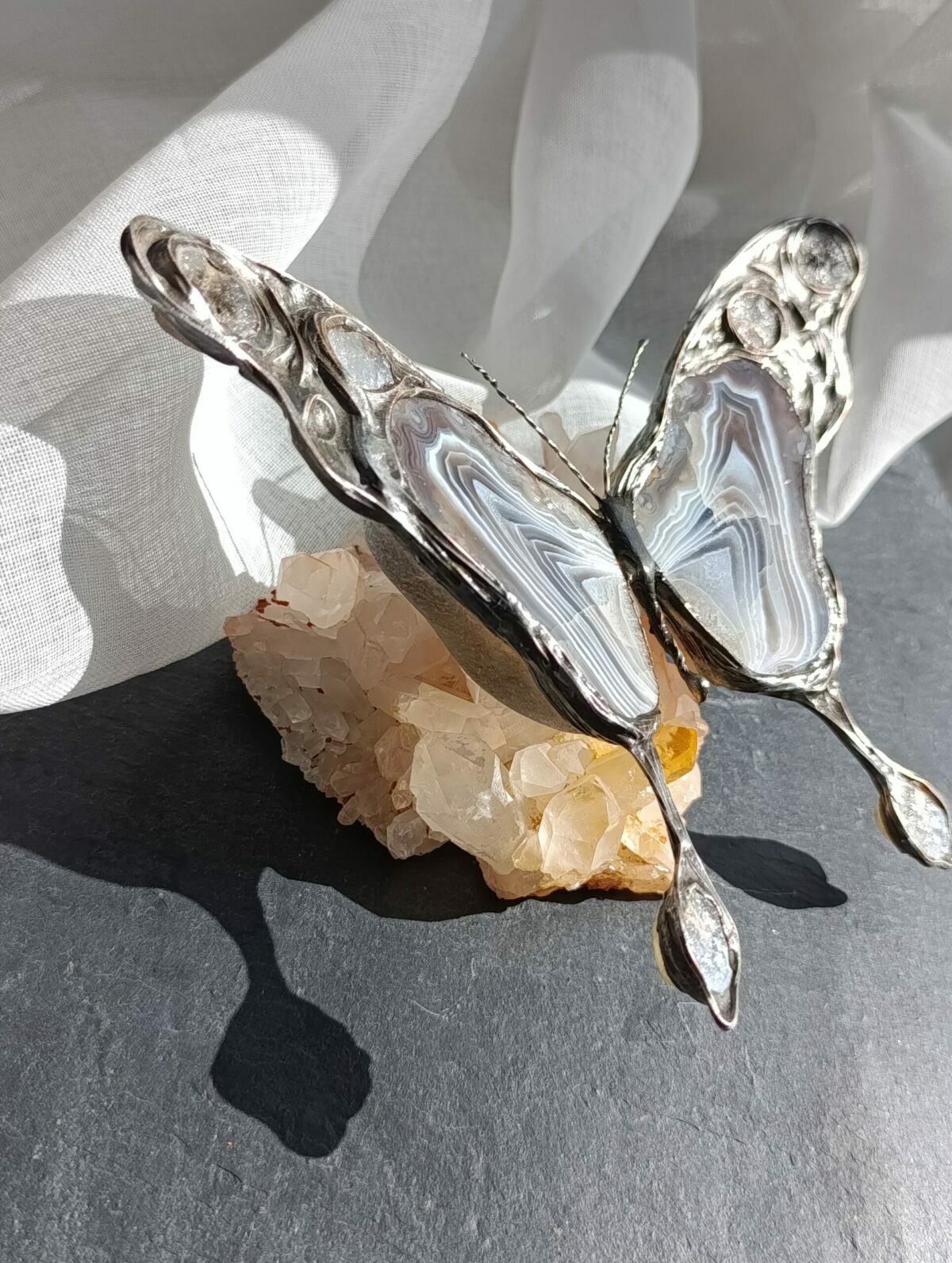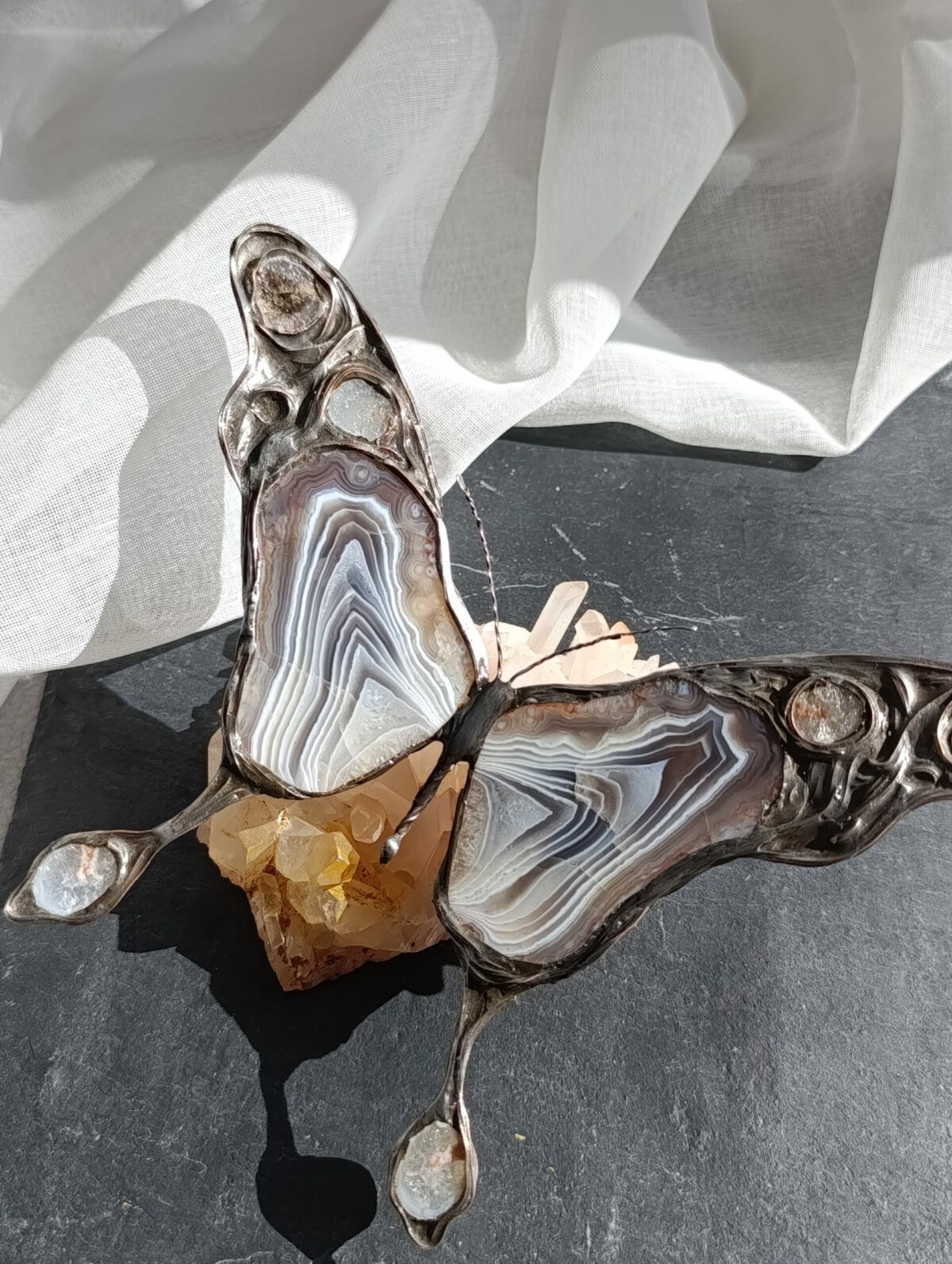 Motyle Vitrene ze szkła iryzowanego – lustrzanego ze zmieniającymi się barwami w zależności od kąta padania światła.
