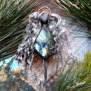 Anioł Vitrene dekoracja – figurka. Niepowtarzalne połączenie naturalnej szczotki kalcytowej lok. Maroko o ślicznym, krystalicznym blasku i szkrzydełkami. Ręcznie szlifowane skrzydła z fluorytu lok. Chiny stanowią jedyne w swoim rodzaju połączenie. Metaloplastyka zespala całość a Aniołek Vitrene stanowi oryginalną dekorację.