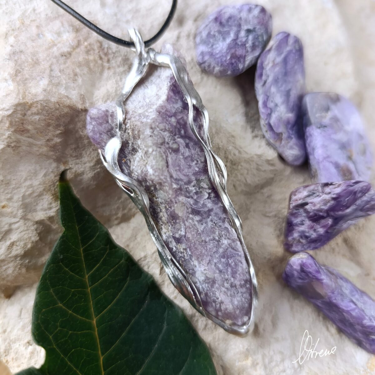 Skład chemiczny czaroitu i jego zmienne właściwości fizyczne powodują, że ten stosunkowo niedawno odkryty minerał opiera się szkiełku i oku. Tajemniczy, kapryśny i grający w „ciuciubabkę” ze zmyslami. Kolory – tak fiolety, cała gama fioletów w otoczeniu perłowej bieli natrolitu i czarnego erigrynu, gdzieś są… Wtrącenia przeźroczyste kwarców i kalcytów zamieszane heliotropem i fiołkiem tak dla przedstawienia odcieni, które zmieniają się nie tylko ze względu na sklad chemicny, ale i natężenie i barwę światła. Niesamowite połączenie i jedyne na kuli ziemskiej miejsce wydobycia jest dla nas skarbnicą abstrakcyjnych wzorów i oryginalnego koloru. Czaroit znad rzeki Czara we wschodniej Syberii, na obszarze Masywu Muruńskiego – Rosja.