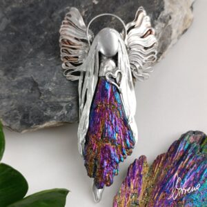 Ten Aniołek uwielbia światło! Z kyanitem płyną emocje a ujście znajdują słowa. Wzrasta świadomość zaistniałych problemów a wytrwałość w walce z wyzwaniami staje się priorytetem. Powłoka tytanowa zaskakuje blaskiem.