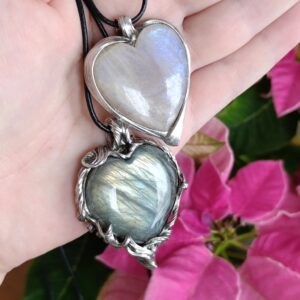 Almandyn, głęboko czerwony granat kojarzony z siłą, odwagą i stabilizacją, w połączeniu z agatem Turritella tworzy zestaw o wyjątkowo uziemiającej i wzmacniającej energii. Agat Turritella, nasycony skamieniałościami sprzed milionów lat, wnosi symbolikę pamięci Ziemi, spokoju i wytrwałości, podczas gdy almandyn dodaje witalności, determinacji i odporności emocjonalnej. Razem pomagają budować poczucie bezpieczeństwa, wzmacniają siłę wewnętrzną i ułatwiają przechodzenie przez trudne doświadczenia, sprzyjając jednocześnie harmonii i równowadze emocjonalnej. To połączenie wspiera integrację przeszłych przeżyć, wzmacnia pewność siebie i pozwala działać z poziomu stabilności, spokoju i mocy. Zamykamy drzwi przeszłości.
